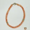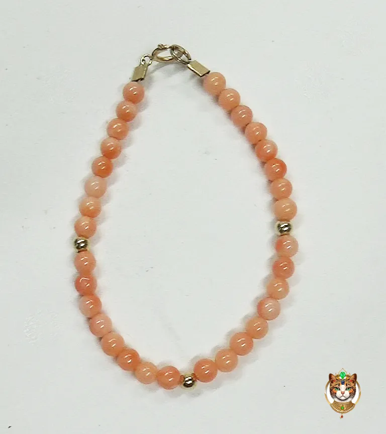 Delicate and full of charm, this girls bracelet features natural pink coral beads measuring 3.5mm, accented with 3 solid 14kt yellow gold spacers for a touch of timeless elegance. This bracelet is hand-made and one of a kind. Each bead is securely strung on durable jewelry wire, ensuring both beauty and safety for everyday wear. Sized at 5 inches, it’s perfect for young wrists and makes a thoughtful gift for birthdays, holidays, or special occasions.