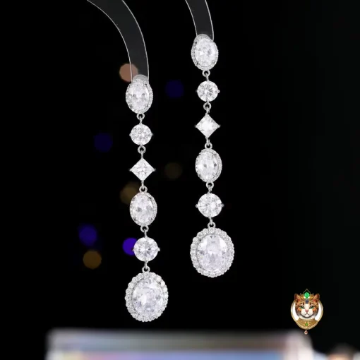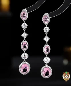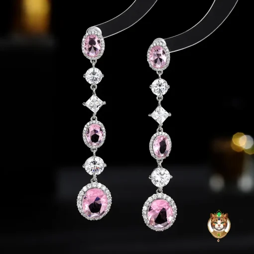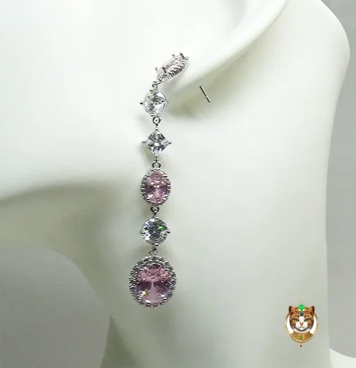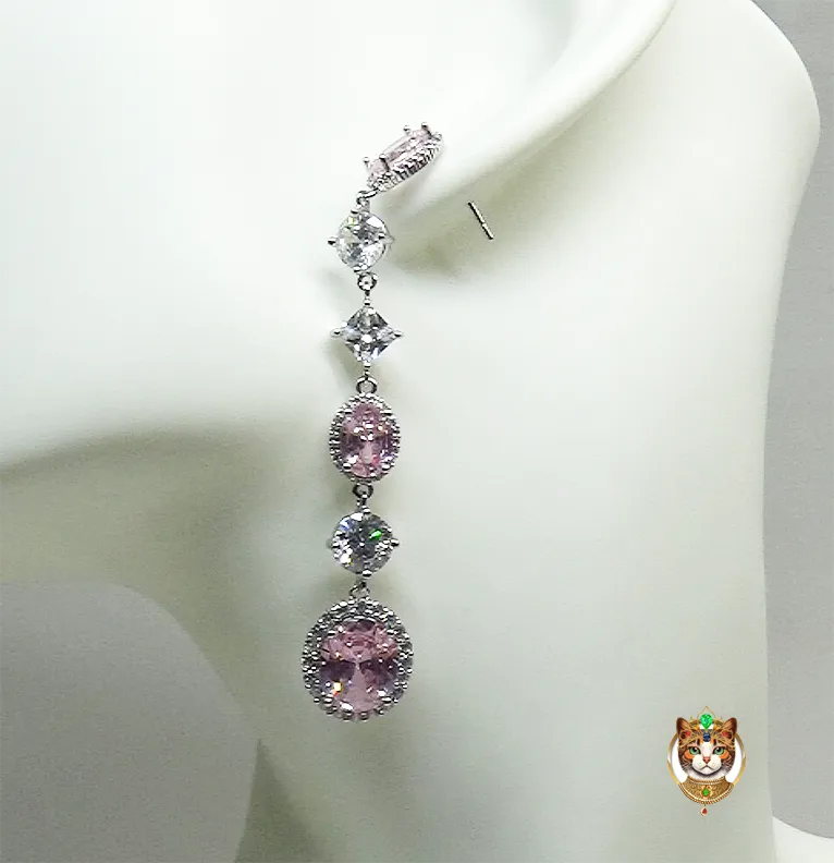 Sterling Silver Dangle Earrings with Blue, Pink or Clear Cubic Zirconia – Elegant Drop Design